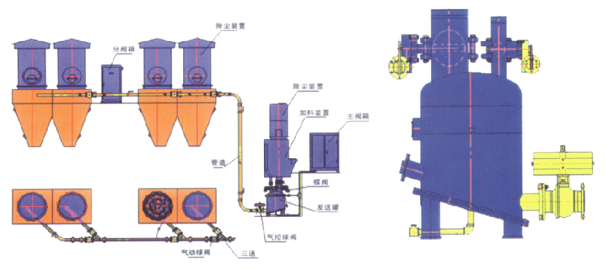 本装置是利用压缩空气的动能 来输送物料的。适宜于输送粘土, 煤粉、石墨粉、水泥、面粉以及化工、冶金、粮食等行业输送 各种粉状物料蛰输送的物料温度不 得超过50℃含水量应低于2.5%。